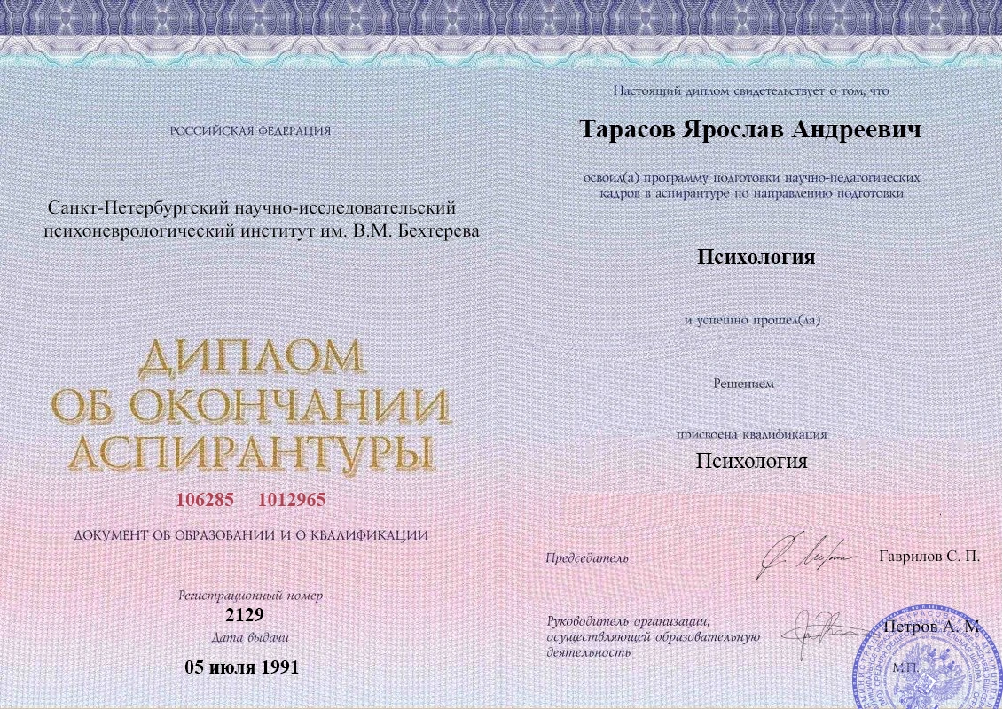 • Российский национальный исследовательский медицинский университет имени Н.И. Пирогова (психиатрия).
